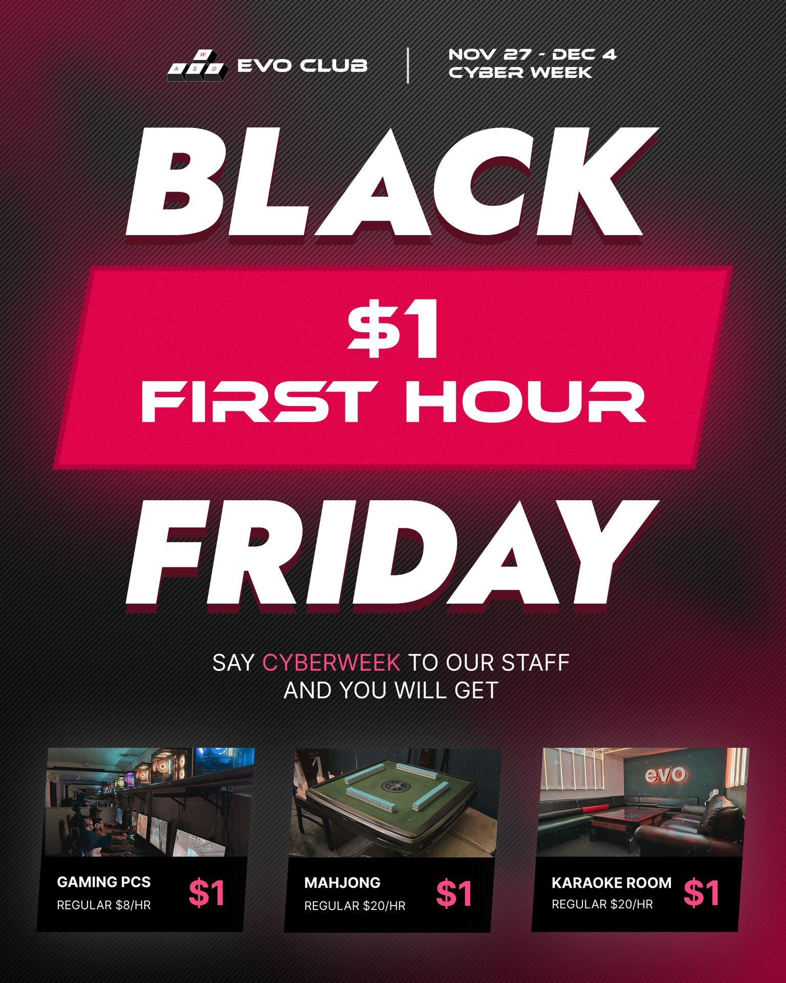 Gaming PCs, Mahjong, Private Rooms, Karaoke — your first hour is only $1, November 27th - December 4th.